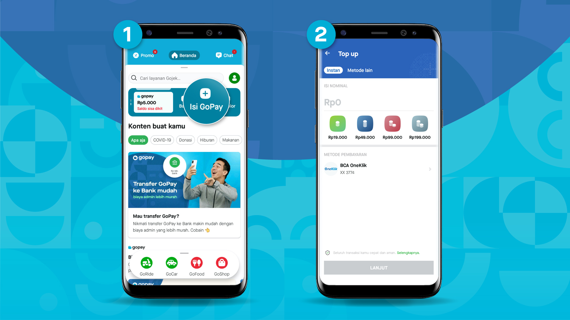 Gopay juga memiliki berbagai metode atau cara untuk melakukan pengisian saldo atau top up, seperti : Pada menu gopay, pilih isi gopay. Melalui driver gojek atau gocar. Sebenarnya cara mengisi gopay cukup mudah. Isi nomor kartu debit bca dan limit harian.