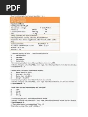 Soal Bahasa Inggris Food Label - 1 - Play this game to review reading.. Name of the product (nama produk) · content/amount (isi/jumlah) · description (deskripsi produk) · ingredients (bahan/komposisi) · nutrition facts ( . Store in cool and dry place, the underlined word has the closest meaning with. Contoh soal medicine and food labels. How much sodium does the product contain per 100 g? · the following text is for question 4 to 9 · one tablet daily.